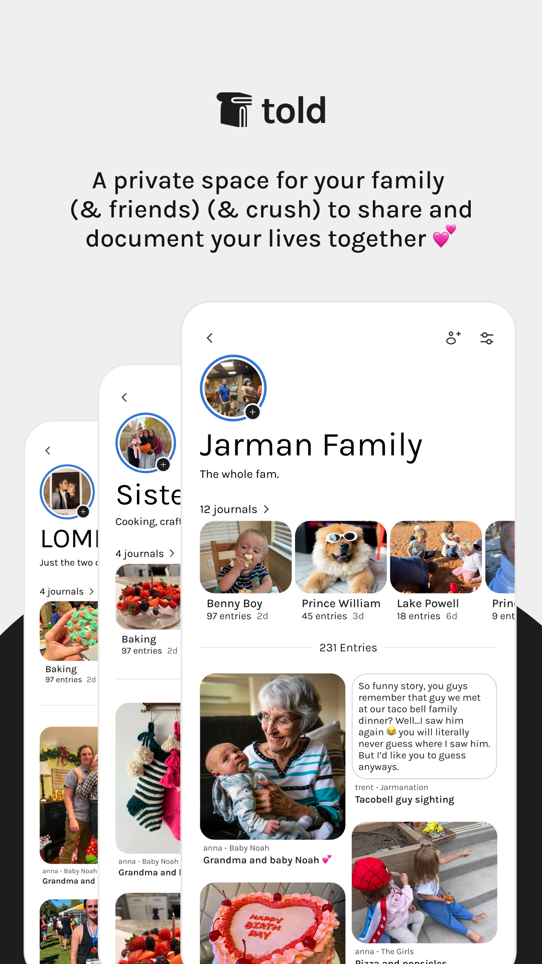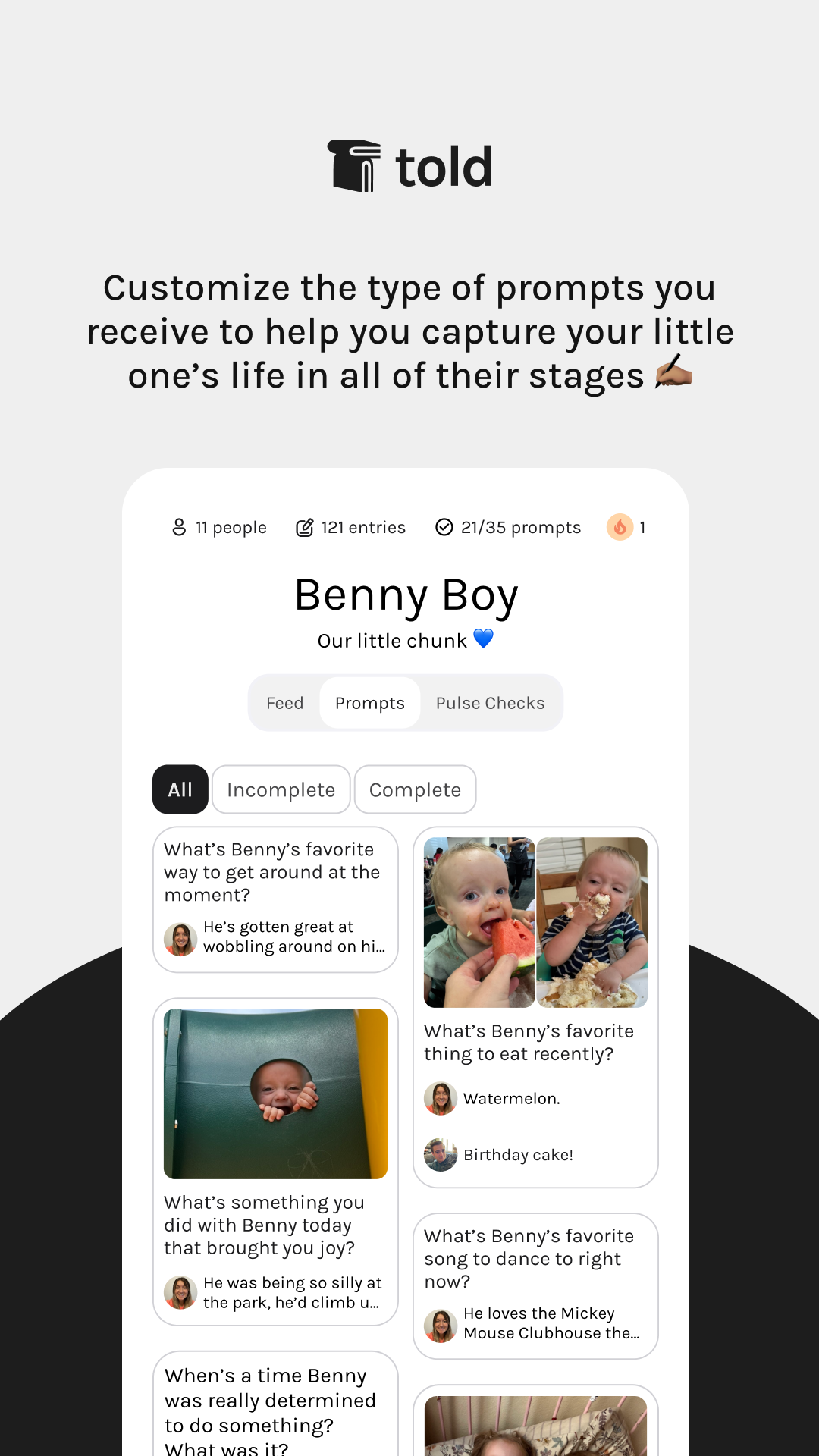If Moms can easily maintain a robust digital journal, while simultaneously sharing it with their family using Told+ premium journal prompts they will subscribe to Told+ for $40-60/yr.